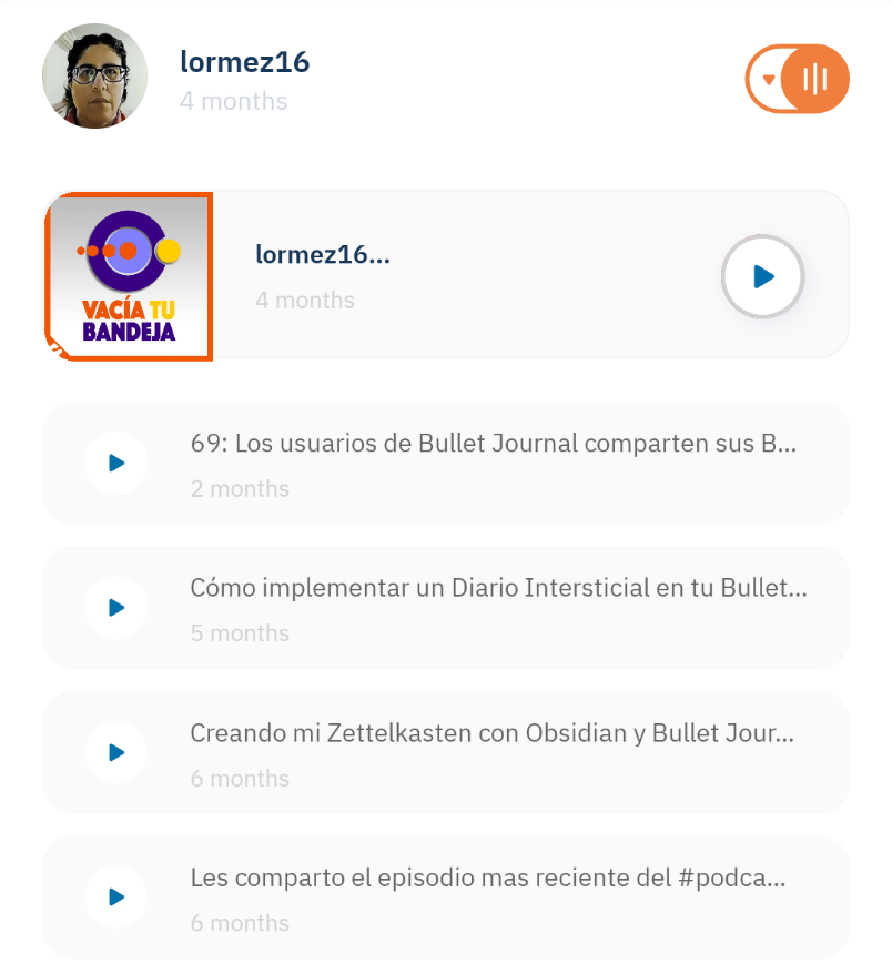 - La lista de tus contenidos. Cualquiera puede ver la lista de tus publicaciones con contenido audio e ir directamente al que más le interese. Además, es posible seguir navegando en la plataforma mientras se escucha el audio elegido.